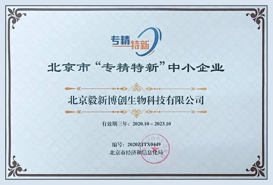 2020年,北京市经济和信息化局公布 “2020年度北京市专精特新中小企业”名单,毅新质谱荣获北京市第一批“专精特新”中小企业。